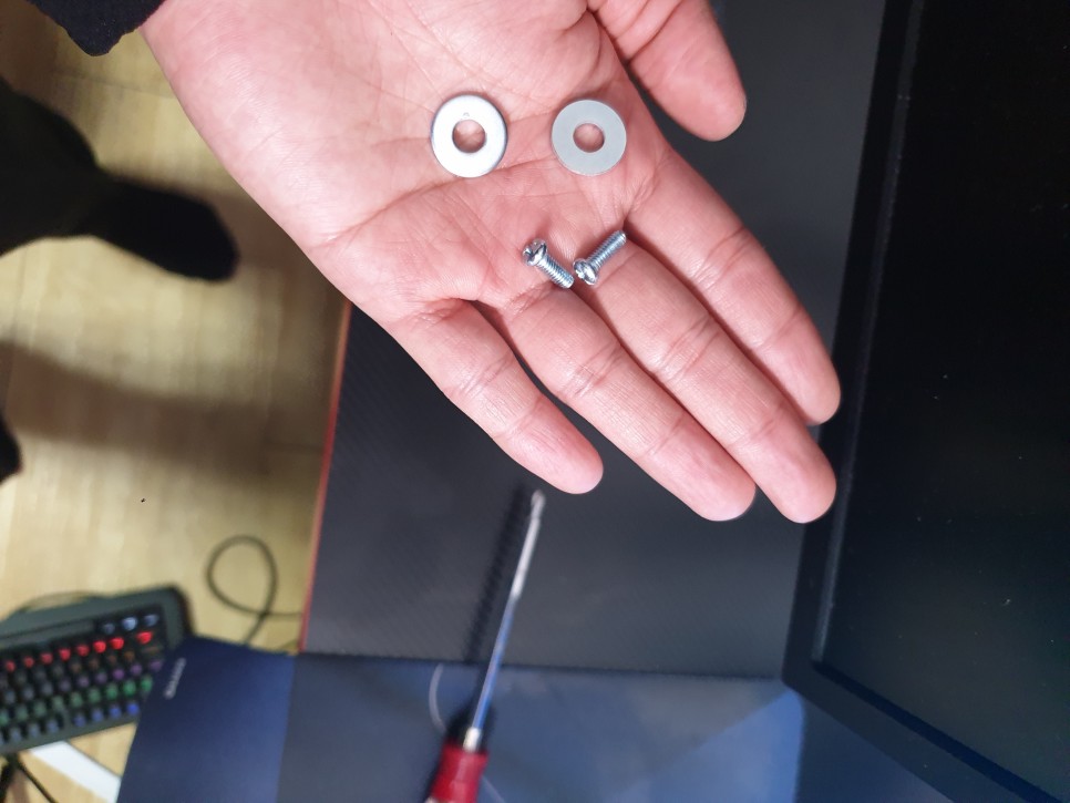 그렇게 모니터를 거치한 후에 나머지 하단 베사홀에 똑같이 와셔 및 볼트를 장착해 주시면 끝이나게 됩니다!