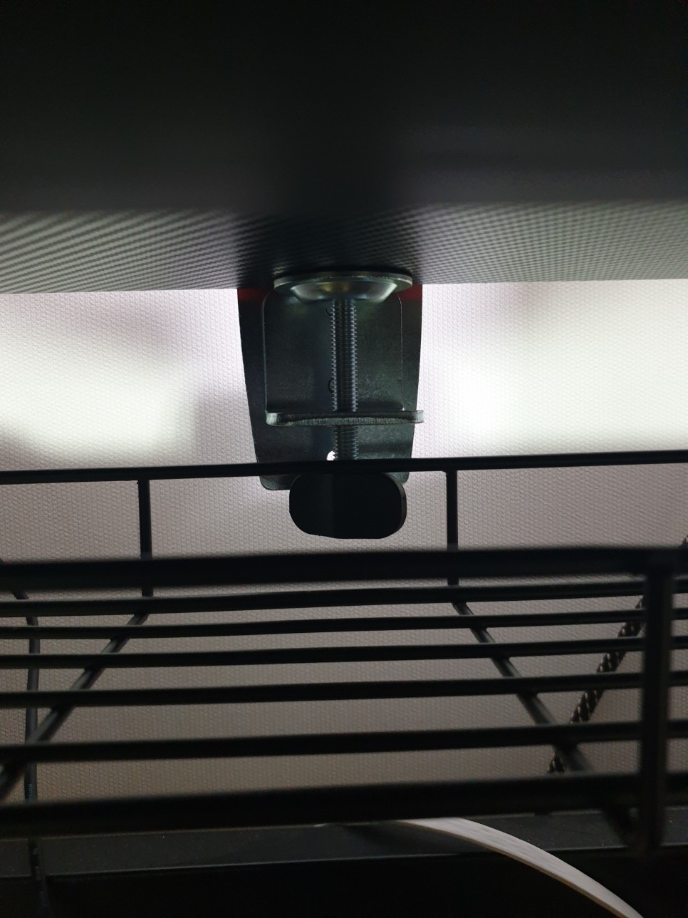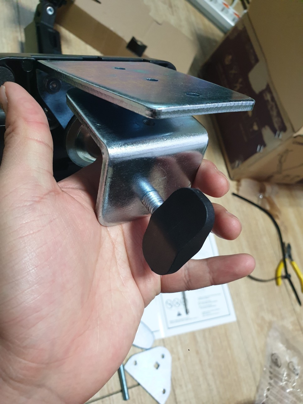 먼저 책상에 지지역할을 해줄 하단부에 관한 조립입니다. 개인적으로는 책상에 구멍을 내서 홀드로 하시는 것을 권장드립니다.