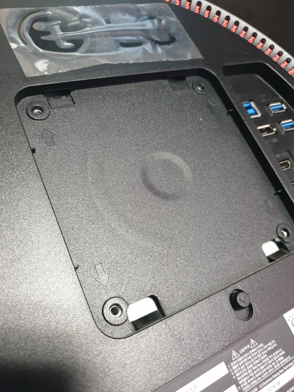 모니터암 내부에는 선을 쉽게 정리할 수 있도록 해주는 공간이 마련이 되어있지만, 제 HDMI 케이블이 좀 유연하지 못한 탓에 그냥 바로 장착을 해버렸습니다.